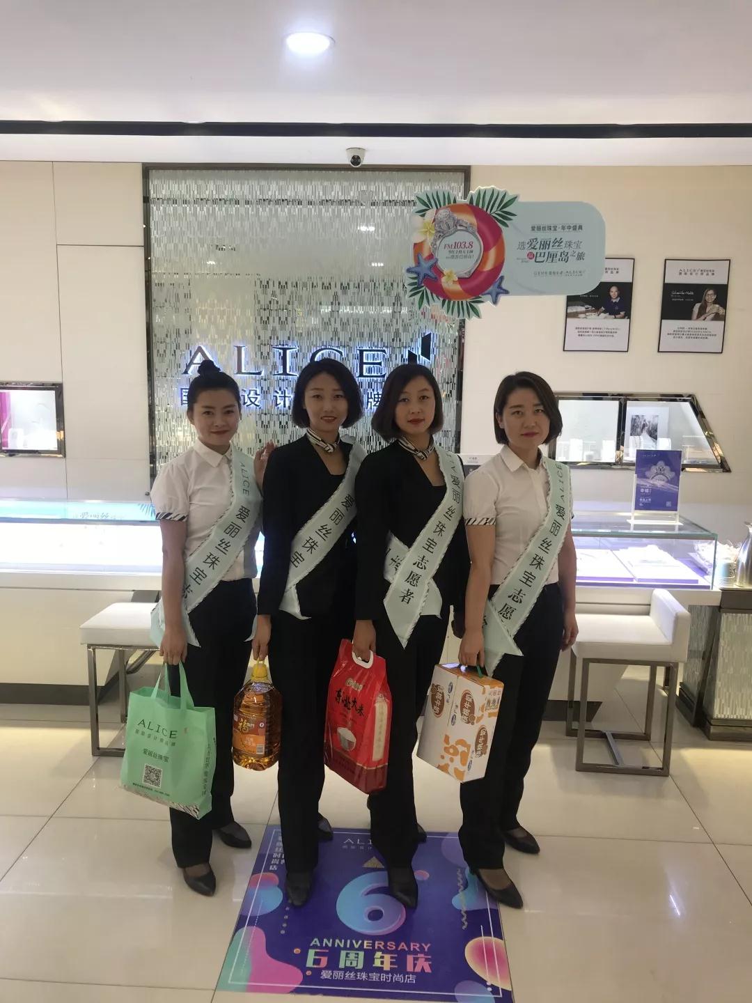 作为吉林省珠宝行业领军企业,爱丽丝珠宝在企业发展的同时不忘社会责任,多年来始终坚持慈善事业,成立了吉林省爱丽丝珠宝志愿者协会,以实际行动回报社会。现已拥有志愿者400余名,覆盖区域为长春、吉林、辽源、白山、松原、通化、德惠等城市,每年进行志愿者服务万余次。用心去服务和帮助社会需要帮助的人,全力打造以“爱与美”为文化的珠宝品牌!
