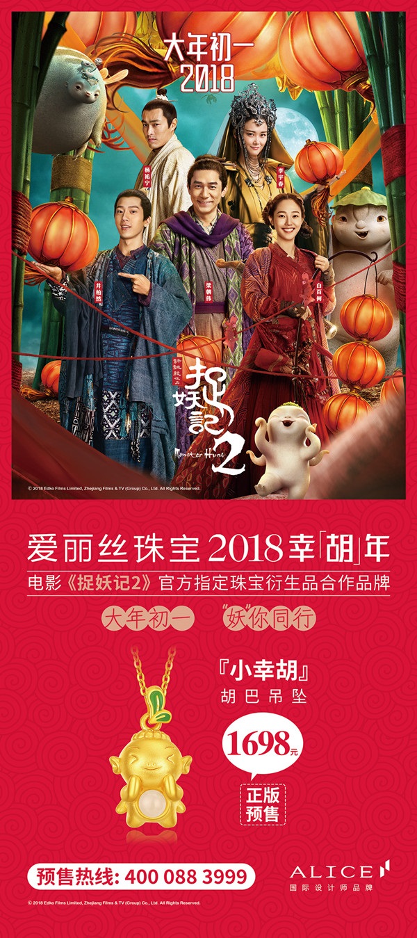 ALICE爱丽丝珠宝(https://www.alicejewelry.com/)成功为《缝纫机乐队》、《捉妖记2》、《唐人街探案2》、《脱单告急》等国内电影设计电影主题的珠宝衍生品。
