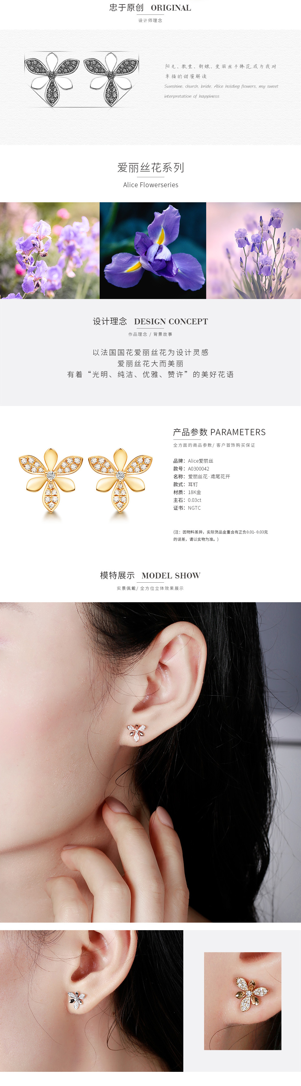 【爱丽丝®花】18K金钻石耳钉