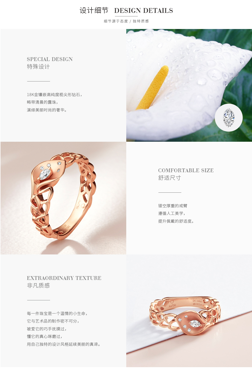 【马蹄莲®】18K玫瑰金钻石戒指